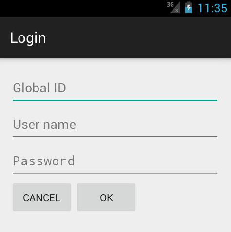 Then the login form appears: the Global ID field is present only if the Joty application runs in sharing mode, (for that its database must be designed with convenient adding of a key to the main entities (that value, indeed, identifies a virtually private data space for a group of users). The user and password fields are always present in the form.