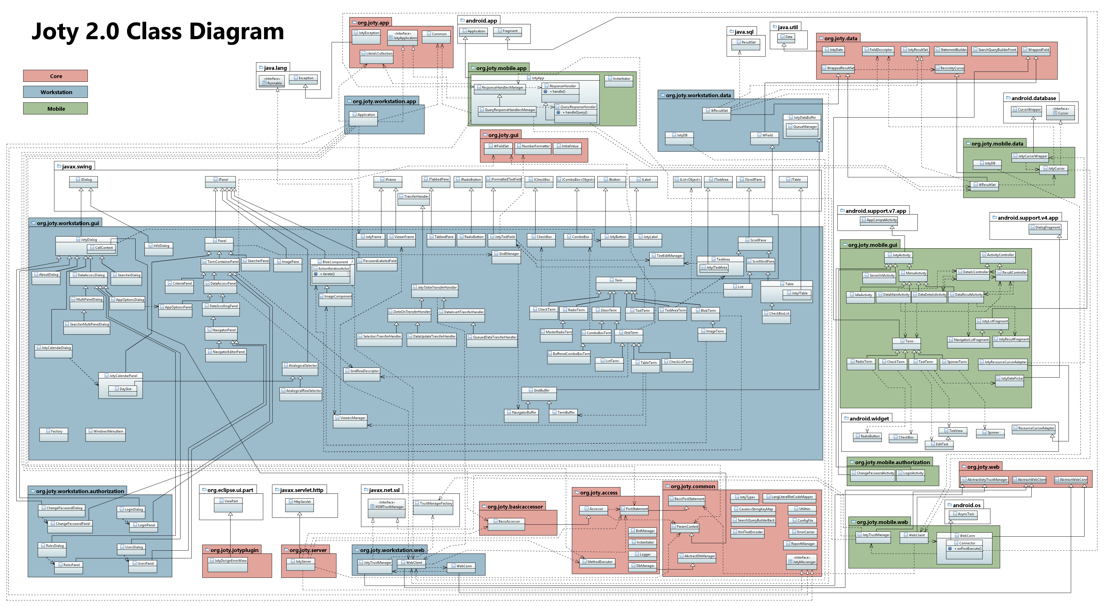 The complete class diagram of Joty 2.0 can be seen in the next image and the source code documentation is here.